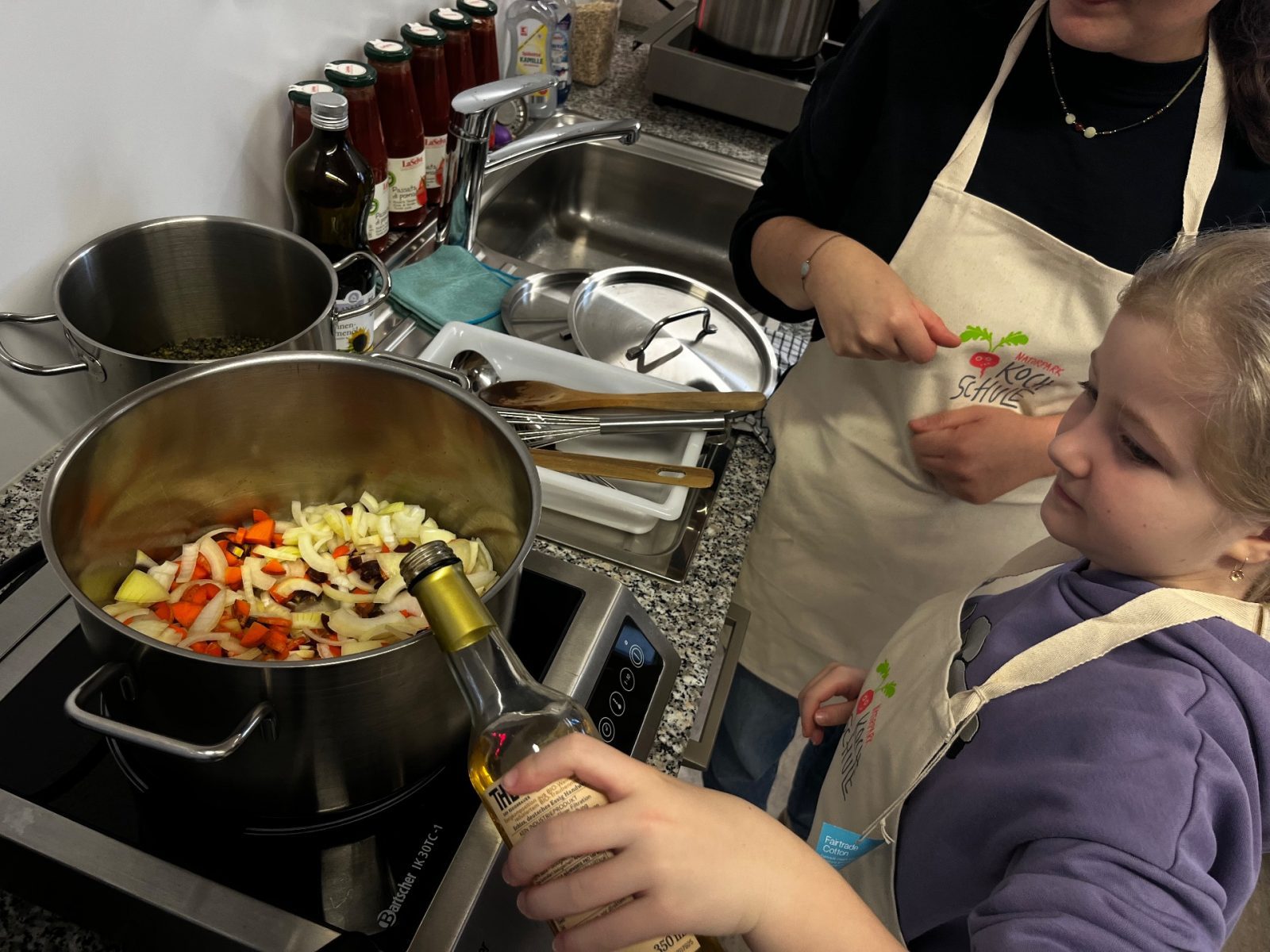 Leckere Vormittage für die Viertklässler! Die vierten Klassen erlebten kürzlich besondere neue Aktionstage zum Thema gesunde Ernährung. Zu Gast waren engagierte Mitarbeiterinnen der Kochschule