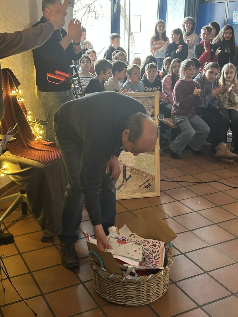 Dafür hatte er sich tolle Erinnerungsgeschenke verdient, die ihn hoffentlich immer wieder an die Zeit an der Berneckschule zurück erinnern werden.