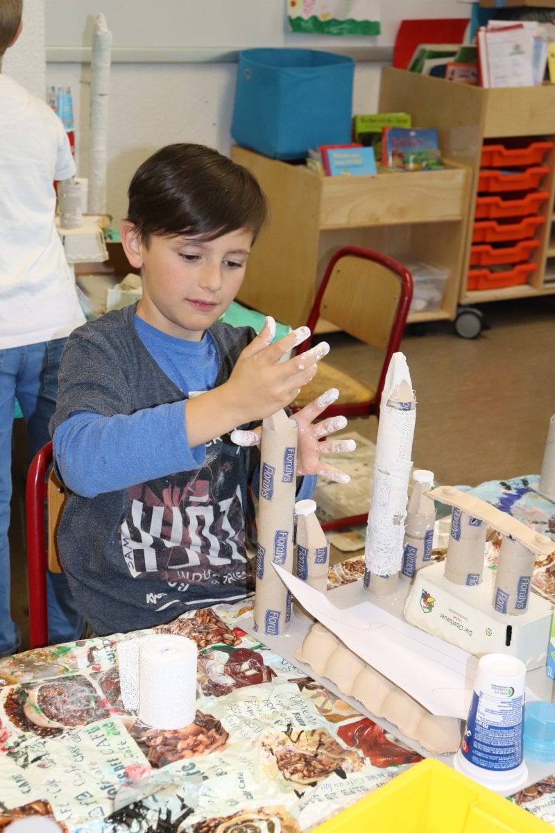Heute wurde zwar kein Müll mehr im Stadtgebiet gesammlt, aber mit Müll fleißig an Traumschlössern und -burgen gebastelt. Wieder andere durften Schokolade verkosten und sich mit dem Thema „Wasser“ auseinander setzten. Bote, die bereits gestern gebaut wurden, konnten zu Wasser gelassen werden und aus getrockneten Blumen wurden wunderschöne Blumenkinder gebastelt.