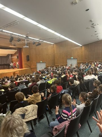 Traditionell fand auch am letzten Schultag wieder ein Schülertreff statt. Zahlreiche weihnachtliche Beiträge schmückten diese letzte Stunde vor den Ferien. Auvh musikalisch wurde es wieder. Eine Viertklässlerin zeigte ihr Können an der Querflöte. Die Theatergruppe spielte ein passendes weihnachtliches Stück und anschließend gab es noch einen englischen Sterne-Rap.