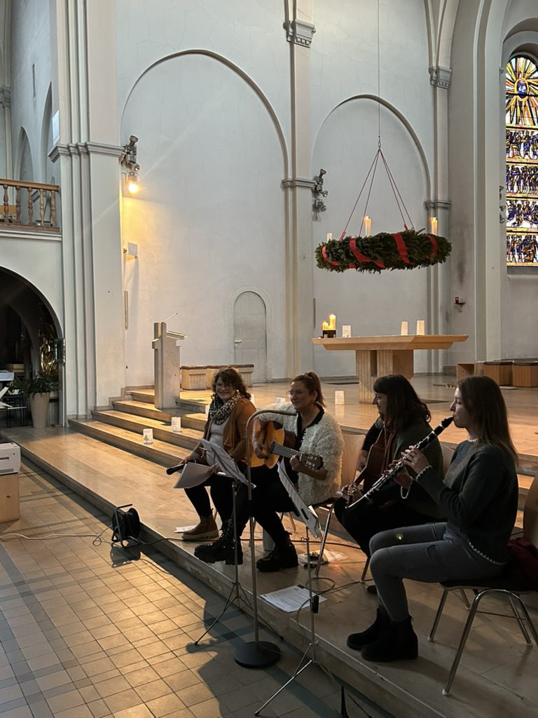 Auch durch den Weihnachtsgottesdienst am Donnerstag wurde die Weihnachtsstimmung noch einmal kräftig verstärkt. Begleitet von einer kleinen Musikgruppe der Lehrkräfte wurde gesungen und darüber gesprochen, auf was sich alle nun in der Weihnachtszeit am meisten freuen.