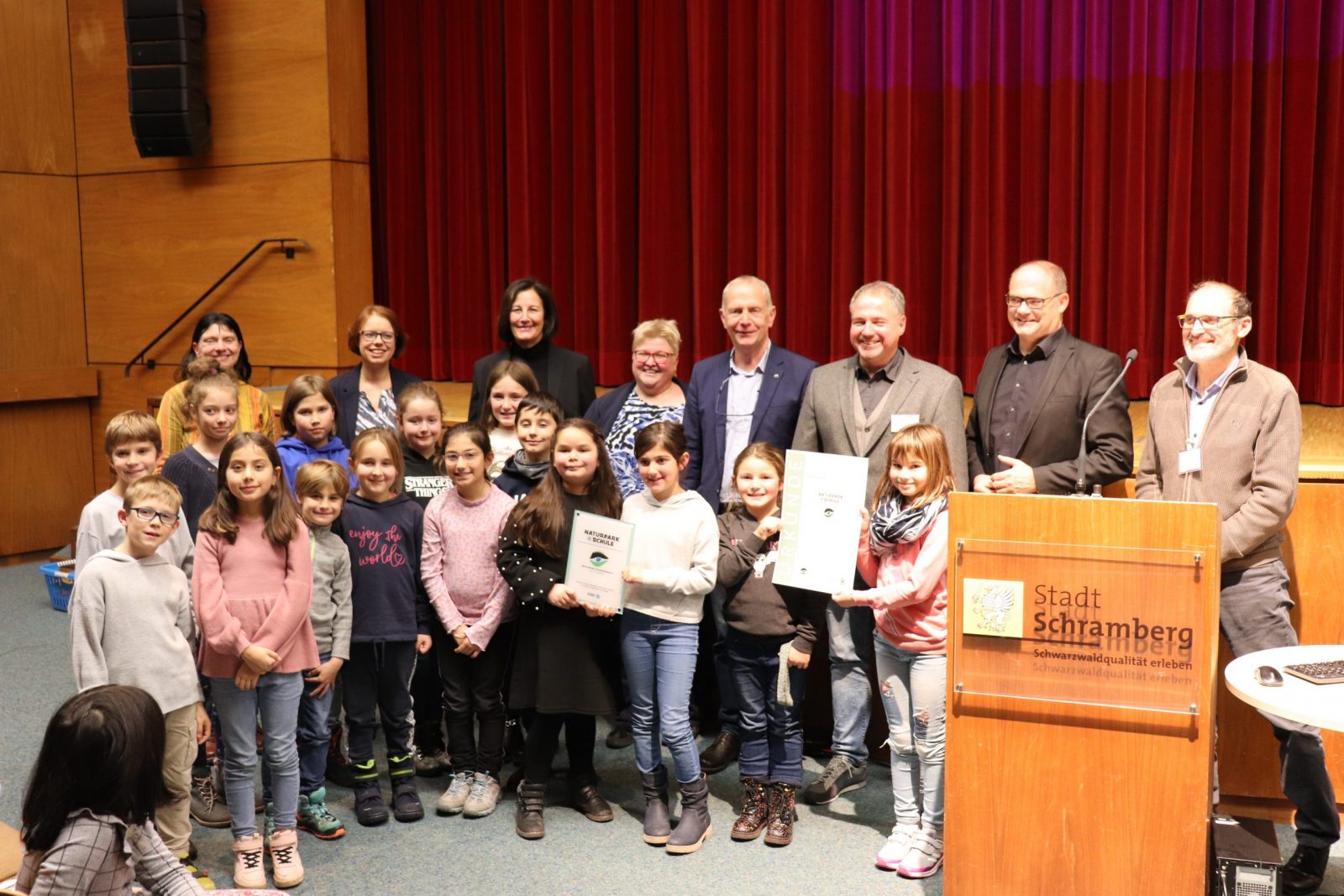 Am 21.11. wurde uns in einem feierlichen Rahmen die Urkunde und Plakette zur Naturparkschule von Herrn Dunker, dem Geschäftsführer des Naturparks Schwarzwald Mitte/Nord überreicht. Die Feier wurde von unseren SchülerInnen musikalisch gestaltet