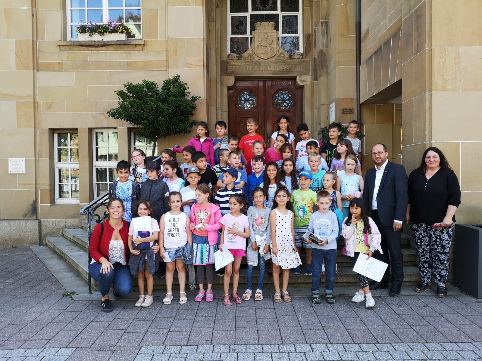 Bereits am Mittwoch besuchten die Klassen E3 und E5 Herrn Oberbürgermeister Herzog im Rathaus. Nach einer herzlichen Begrüßung schauten die Kinder einen Kurzfilm über Schramberg an. Danach beantwortete Herr Herzog geduldig die