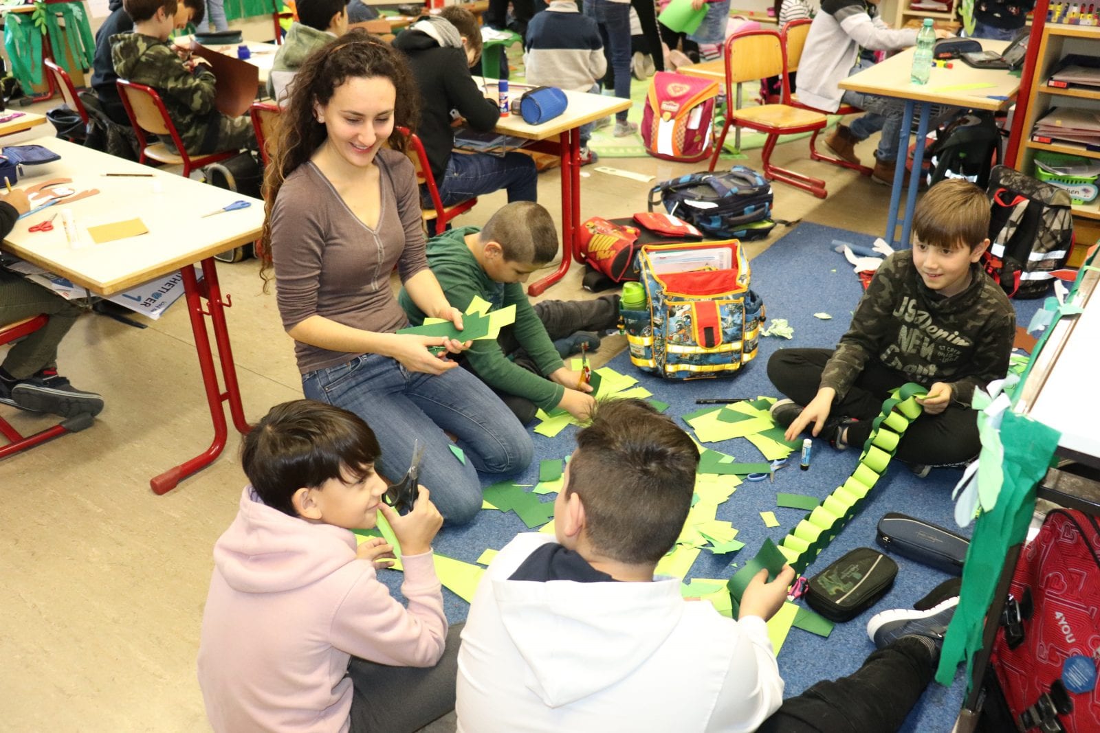 Auch heute wurde wieder fleißig bebastelt, geklebt, genäht, geschnitten,... Immer mehr ist zu erkennen, welche Tiere im Berneckdschungel ihr Unwesen treiben.
